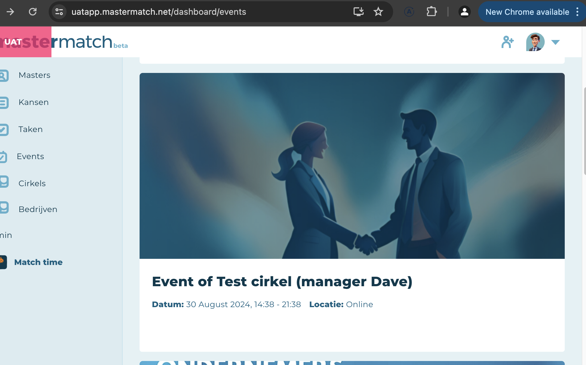 Besides AI matchmaking, the Mastermatch platform provided events, networking circles, company circles, messaging boards, and a match request feed to allow users to also manually look for the next business match.
