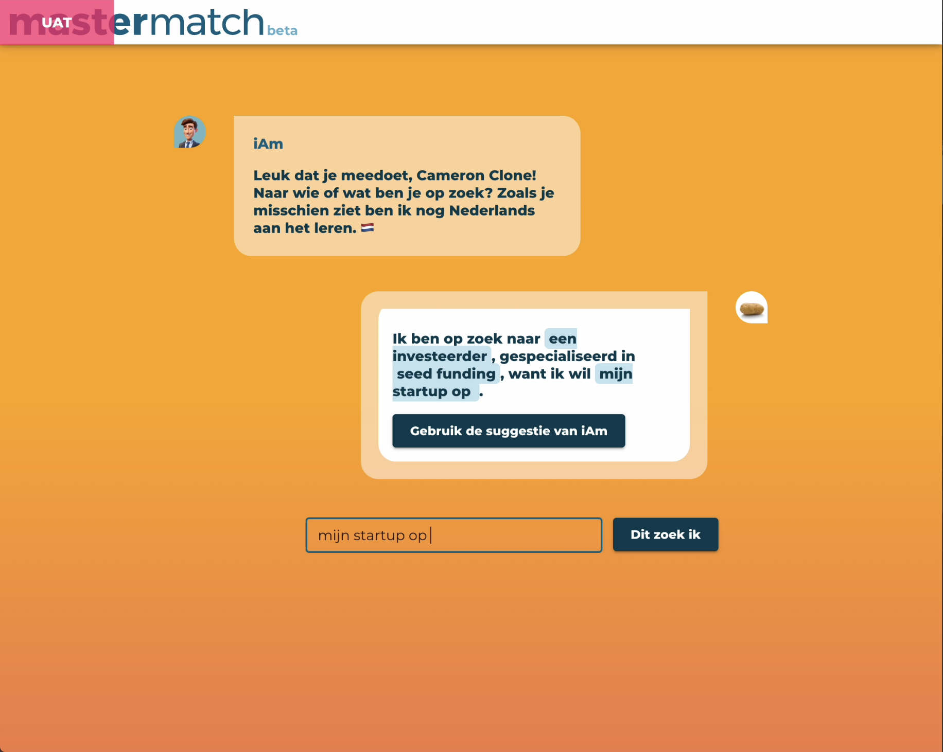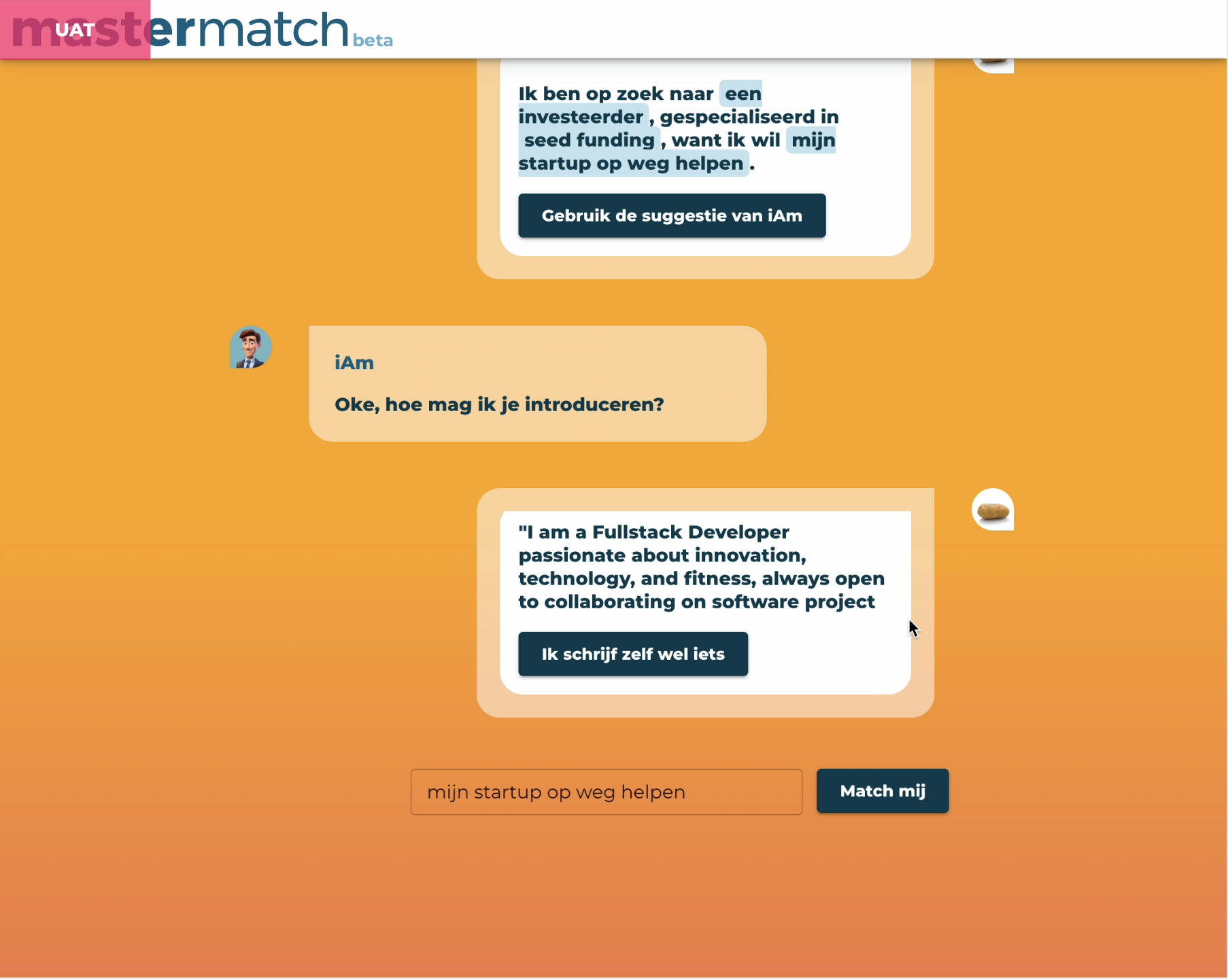 During the weekly "Match Time" event, users could tell the AI who they are and what they have to offer, or - if the AI had enough information - we could fill this in for them automatically.