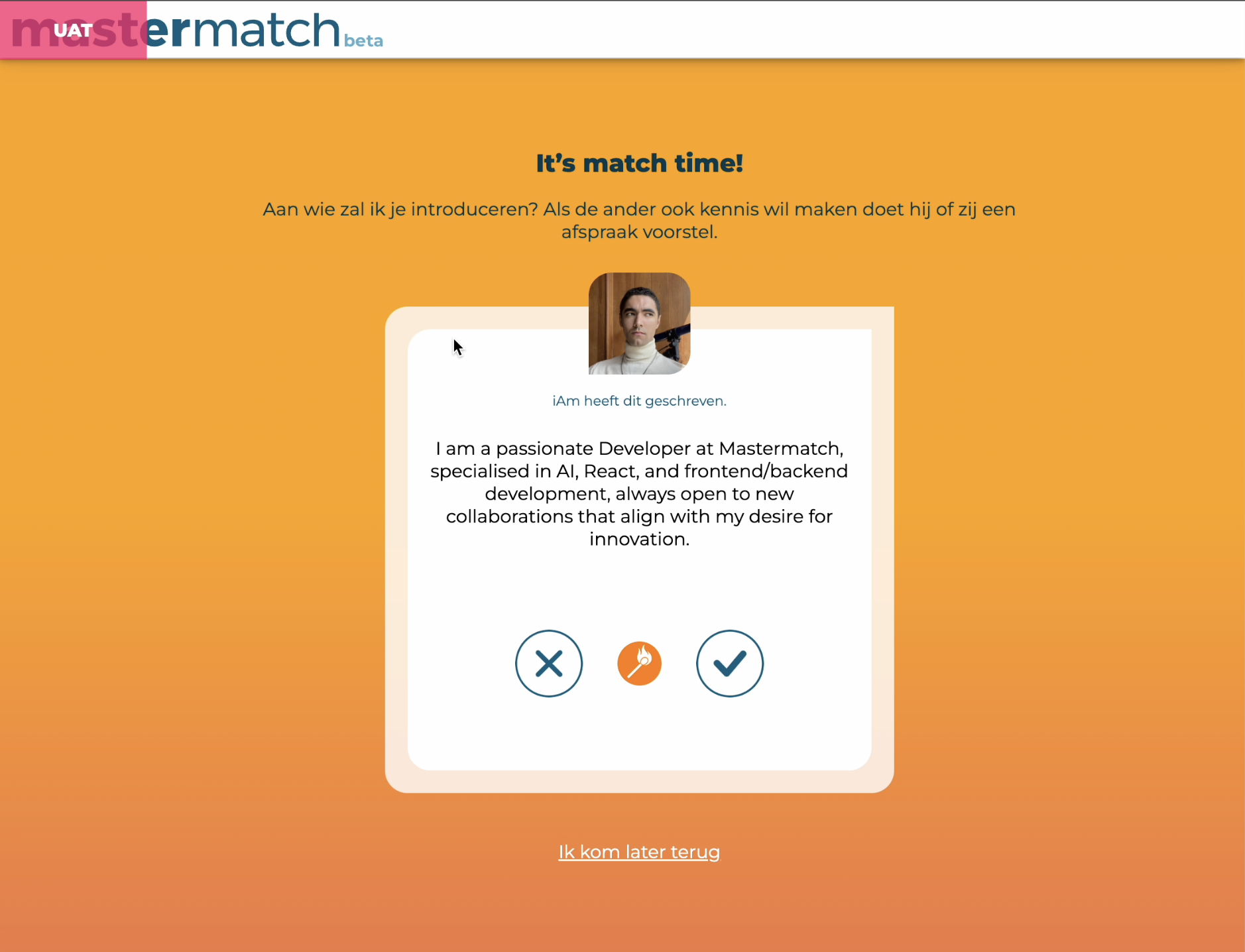 After filling in who you are and what you're looking for, the AI would automatically suggest the best possible matches for you and suggest you to others.